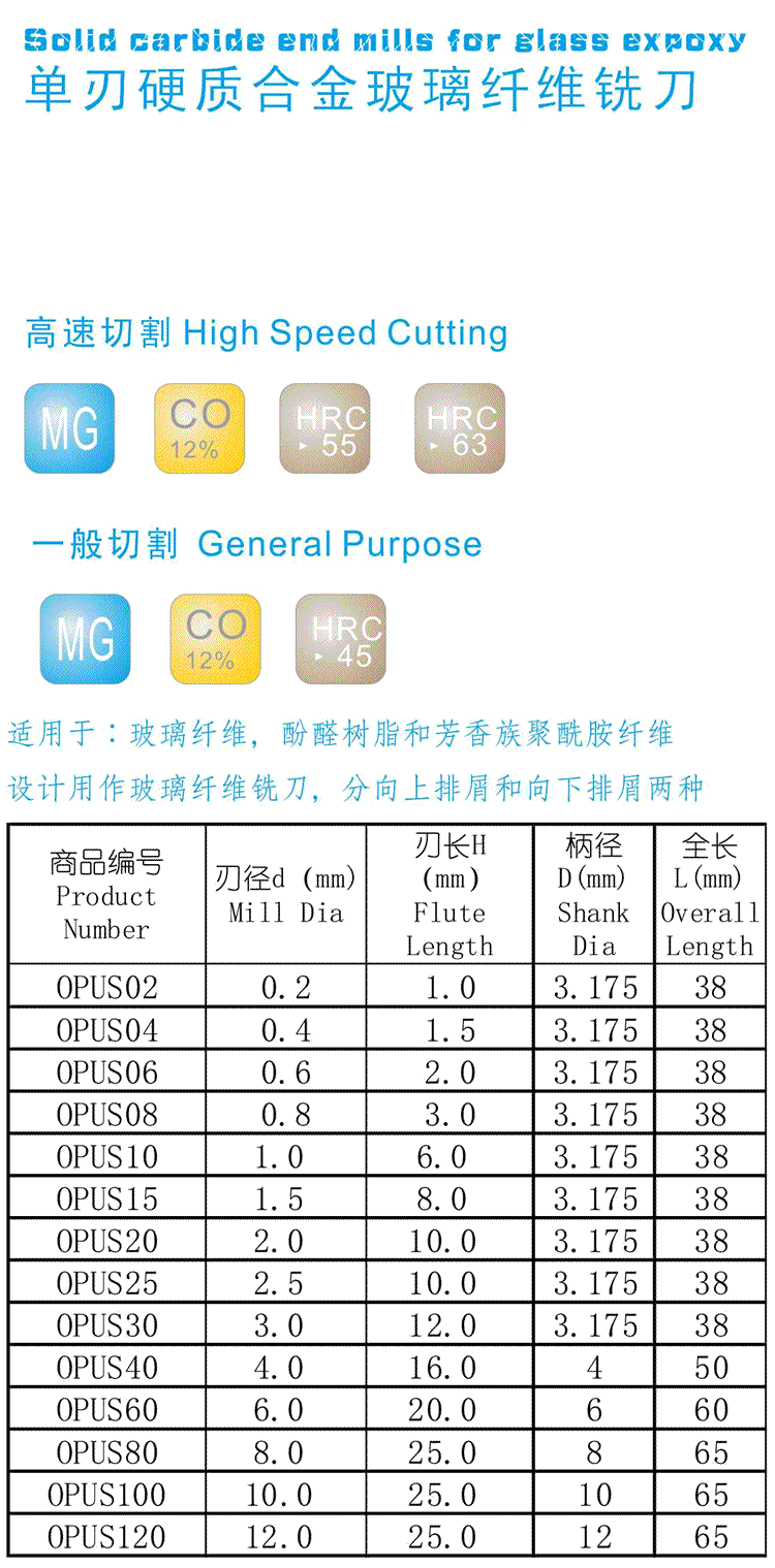 玻璃纤维铣刀